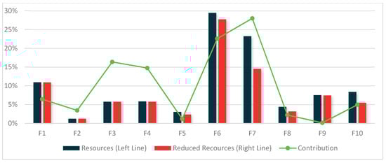 Figure 6 shows the experimental results for each feed that provided the OSINT data. The indigo bar means the total number of data collected from individual feeds, and the red bar means the number of data reduced when the model of this paper is applied. Finally, the green line represents the contribution score contributed by the cooperative system. Contributions can be used as an indicator to distribute rewards in future cooperative systems. In the case of F1 feeds, there are no reduced resources compared to the number of resources collected, but because of the large number of first information, more contributions are scored compared to the amount of data contributed. On the other hand, F9 feeds have very low resource reductions, as in F1, but they have not contributed to improving data quality with other feeds, so they have very low contributions.