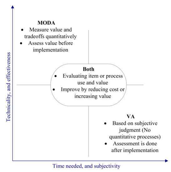 Consequently, decisions can be very subjective. For these reasons, a framework that considers putting this value analysis context within a more sound mathematical structure that captures criteria weights and the sensitivity of these weights is the contribution of this paper. Figure 1 below is a schematic view of how the MODA framework aligns with the value analysis.