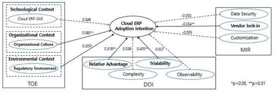 Second, since the results of this study were analyzed by questionnaires collected in Korea, the results might be limited to Korea. In fact, there are some mismatched results with previous studies conducted overseas. For example, although previous research in Saudi Arabia has shown that ICT skill and complexity were strongly related to cloud-based ERP adoption, while organizational culture and trialability had no significant influence [