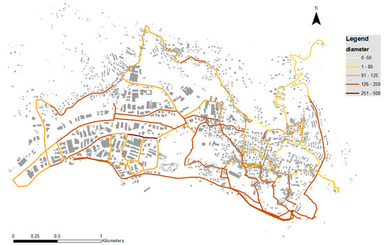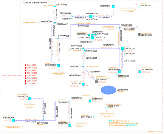 The goal of this Section is to show how the methodology previously described works. To this aim, it was applied to a specific case study, namely the IWS of the Municipality of Solofra (Southern Italy) (Figure 5). The water network of this town was characterized by a 60% level of water losses. This implied the need to identify actions for network restructuring to be included in the Investment Program (2019–2023).