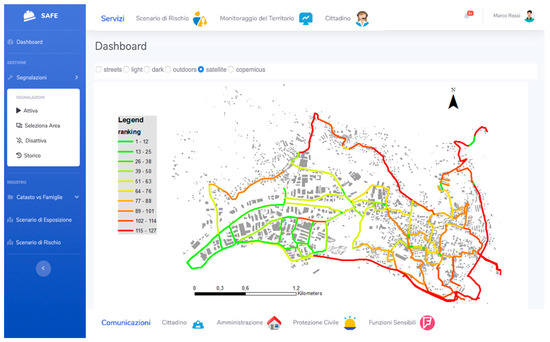 Figure 13 shows the SAFE interface that embeds the model proposed in [55]. Built as a decision support tool, SAFE can be used in several domains, from social and institutional to emergency and health [56,57]. It is based on the awareness that the environment and citizens are important “data sources,” which constantly provide relevant information for better urban planning.