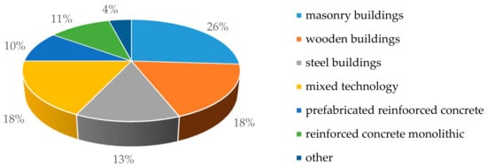 Figure 1. Percentage share of threats, failures, and disasters according to the division into technologies of the constructed object according to [44].