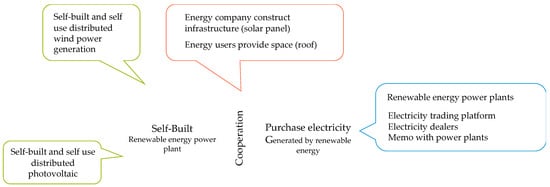 Introducing renewable energy into the production process of enterprises is an effective and currently the most popular solution. Energy users have several options as shown in Figure 7. Some choose to build renewable energy power plants by themselves. Though with a high initial cost, the enterprise can enjoy free green electricity for a long period, around 20 to 25 years. Besides, the national and local subsidies will directly be given to energy users. It is also an excellent way to show off to the public with green factories. Distributed photovoltaic technology is currently the most popular way, and distributed wind power plants are becoming attractive with continuing government financial support; roof rental is another plan. Enterprises usually have plenty of free roof space. The property provides space and the energy company will be responsible for construction. The enterprise will be the first choice for power sales generated from their property. In this way, energy supply can be guaranteed and the price could be relatively stable. Electricity trading platforms and electricity dealers offer the third solution. Energy users can purchase green electricity via these media. They can also sign memos with power plants directly and the technology of long-distance power transmission makes it possible.