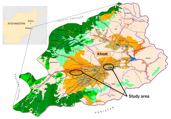 - World Weather Online. Statistics of Rainfall and Temperature of Khost Province. Available online: https://www.worldweatheronline.com/khost-weather-averages/khowst/af.aspx (accessed on 18 April 2020).