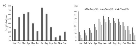 Monthly precipitation (a) and temperature (b) in 2016 in Khost province, Afghanistan [31].