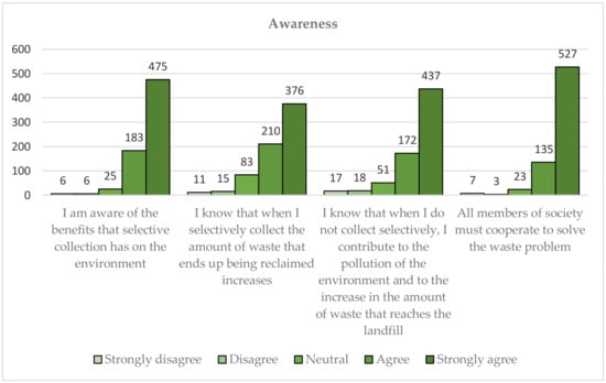 Trust is a set of behaviors that reflect the expectations of individuals they have from different entities—in this case from the authorities—and regards the means through which the entities succeed in managing the waste situation [28]. In the study conducted by Nguyen et al. [25], trust is the variable that makes the greatest contribution to predicting the intent of selective collection of the Hanoi community.