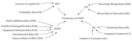 As a strategic alliance, the economic benefit is the most direct indicator to assess the performance and stability of the alliance [134]. Moreover, as a home-delivery-oriented supply chain, the operation efficiency and service quality decide the competitiveness, market size, and development of the alliance [135]. On the other hand, to follow the trend of social development, the new emerging industry must continuously research to promote the development of the alliance. Therefore, this paper selected benefit (BEN), home-delivery operation process (HDOP), service quality (SQ), study and innovation (SAI) [136,137,138,139,140,141] as four main indicators to build the performance appraisal subsystem of the HASC alliance (Figure 13).