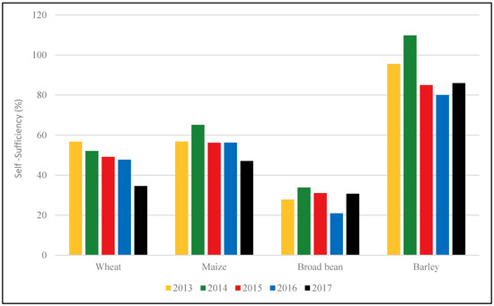 Self-sufficiency of selected strategic crops in Egypt [4].