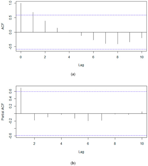 Autocorrelation function (ACF) and Partial autocorrelation function (PACF) are used to estimate the characteristics of time series. ACF plots display the correlation between a series and its lags, which can help to estimate the order of MA(q). However, PACF plots display the direct relationship between a variable and its lag, so the order of AR(p) can be estimated. Annual historical data about the prices and costs of cultivated crops are collected from the Ministry of Agriculture and Land Reclamation [48] and the Central Agency for Public Mobilization and Statistics [49]. Data are divided into two sets: training set from 2000 to 2010, and test set for the remaining seven years’ data from 2011 to 2017. These steps can help to test the accuracy of the ARIMA model for future predictions of prices and costs for each crop.