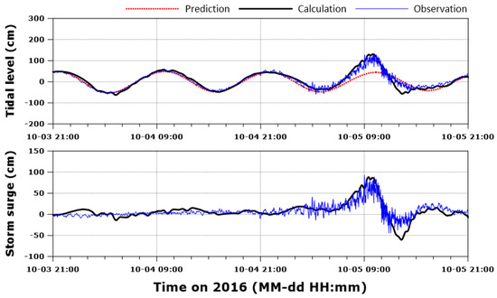 Verification of tidal level and storm surge during Typhoon Chaba.
