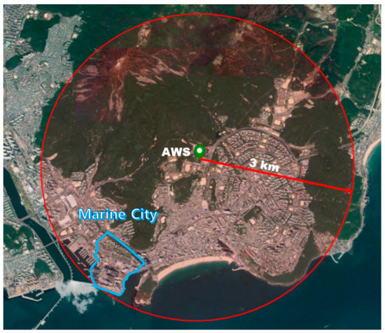 Locations of the Haeundae AWS and Marine City watershed.