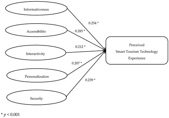 The results of this study enriched the theoretical implications of smart tourism. The study adopted the attributes of STT proposed by Huang et al. [] and added a new attribute, security. In other words, this study transformed smart tourism into a measurable model and identified the importance of these five attributes (informativeness, accessibility, interactivity, personalization, and security). The results showed that accessibility was the most significant contributor to tourists’ perceived STT experience. The reasons may be that tourists can easily use STTs at the destination at any time when they are highly accessible. With easy access to STT, tourists spend less time and effort investigating how to use these technologies, which enables them to enjoy technology-based travel experiences at the destination. Informativeness was another highly influential contributor to perceived STT experience followed by accessibility. When embracing STTs at destinations, tourists can find information on food and transportation at the destination. STTs enable tourists to have more opportunities to engage in a wide range of activities and events. Moreover, tourists displayed relatively low satisfaction with personalization in the context of STT experience. Most of the Chinese tourist participants were familiar with STTs and had used them for more than three years. Therefore, for Chinese tourists, the ordinary technology used in tourism might not be affected since they pursued unique and novelty technology-based travel experiences. In this regard, STT may ignore their personal requirements.