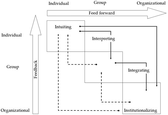 Organizational learning model. Source: Authors’ own based on Crossan, Lane, and White [21] (p. 532).