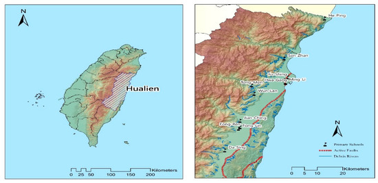 Taiwan is affected by the movement of the continental plates and the disturbances caused by tropical cyclones, and disasters often occur there [10]. This is especially true in the central part of Eastern Taiwan, which faces the Pacific Ocean. The terrain is mountainous and crisscrossed with rivers, with two mountain chains bisected by a long, narrow valley. The area is located in an active seismic belt and is regularly affected by tectonic plate collisions. It also bears the brunt of tropical depression disturbances that form over the Pacific Ocean, a number of which predictably develop into typhoons each year. In July 2012, Typhoon Saola hit the central part of Eastern Taiwan, and on February 6, 2018, a magnitude-6.2 earthquake struck there. The impact of disasters like these and the promotion of disaster prevention are the main factors that ensure the safety of schools and communities [11]. Despite the fact that both the aforementioned disasters caused deaths and damage, the passage of time brings with it the risk that disaster awareness will decrease as collective memory of losses fades. Disaster risk-reduction education and regular drills are therefore imperative to maintain a basic level of resilience for any organization or community. This awareness and training must be inculcated in the populace from a young age so that every member of the community can implement appropriate responses when necessary. Therefore, fostering organizational resilience in schools by training faculty to be resilient in their thinking is central to any school’s ability to cope with disaster management and educate the next generation in this regard. In practical terms, the key to interoperability in terms of disaster management lies in the integration of communication interfaces, centralized resources and unity of power [12]. We therefore integrate the various organizations, extant topical research and relevant development plans collated from various administrative departments and disaster relief organizations to construct an integrated emergency management system. The vertical integration and horizontal connection are intended to provide continuous support for disaster responses that can be modified according to different disaster situations, as needed, to maintain the effectiveness of response actions [7,9,13].