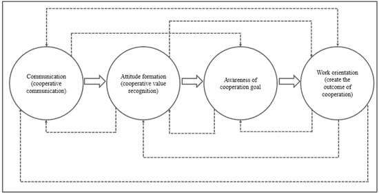 Deutsch [27] presented a cooperation selection theory applied with the utility theory [28] or the aspiration-level theory [29]. Deutsch’s [30] cooperation theory also indicates that individuals or people cooperate toward group goals connected to individual goals and select cooperation due to rational and cognitive decision-making. Although most studies related to this model have been conducted on interpersonal relationships, the cooperation theory is also suitable for studies on the relationships between departments in an organization and other groups [31].