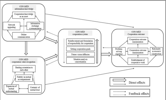 A domain process to attain situation analysis concretization, future vision system diffusion, reinforcement and formulation of responsibility for cooperation, and cooperation goal setting was derived through the setting of the relationships between the four large- and ten medium-classification factors for cooperation under the ‘perception’ domain. This process was labeled the “CON-MED cooperation system” domain model.