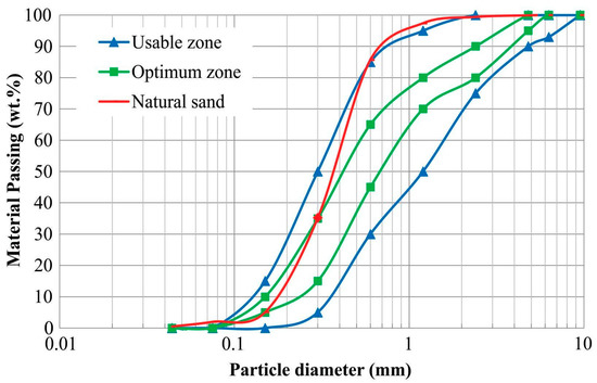 - American Society for Testing and Materials. C 136: Standard Test Method for Sieve Analysis of Fine and Coarse Aggregates; ASTM International: West Conshohocken, PA, USA, 2006. [Google Scholar]