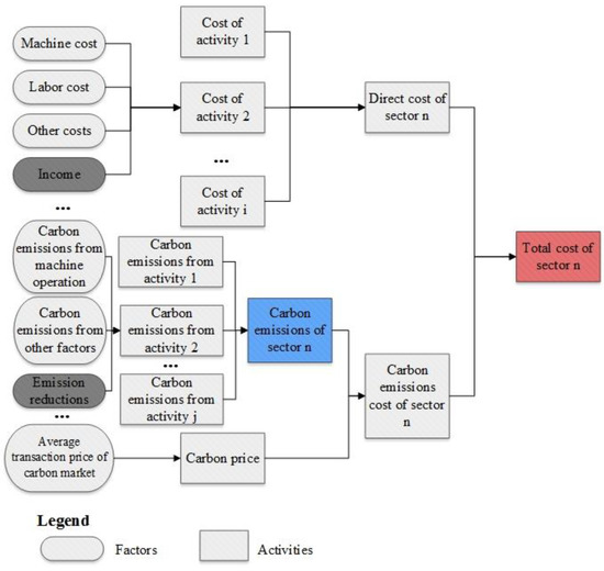 When n = 3, is the total cost of sector 3. The recycling plant sector includes only the cost of waste treatment. The carbon emissions from the recycling plant include those from waste treatment, which include those from machine operation minus any emission reductions.