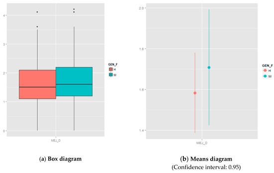 Descriptive statistics of the amelioration variable MEJ over the gender variable GEN