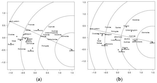 The starting point in multidimensional scaling is the matrix of distance (similarities) between objects on a m-dimensional scale , where i, k—object number, n—number of objects [45] (p. 522). To determine the matrix a matrix was used, where is the value of the j-th variable in the i-th object (j = 1, 2,..., m). In typical economic studies, variables may be measured on different scales and may have different characteristics. If all the variables in the research are measured on a scale at least interval, then classic multidimensional scaling may be used. If at least one variable is measured on an ordinal scale, then non-metric scaling should be used.