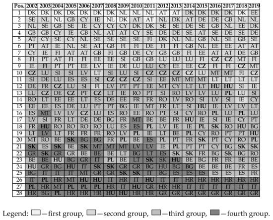Ranking of European Union countries by labour market situation in the years 2002–2019. Source: Authors’ elaboration, based on the Eurostat data.