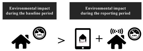 Besides the aforementioned considerations, the EnerGAware game-based solution for energy saving would be worthwhile if it could reduce the impact of the energy consumed by houses in the reporting period and the implemented solution, in relation to the impact of the energy consumed by houses in the baseline period (Figure 2).