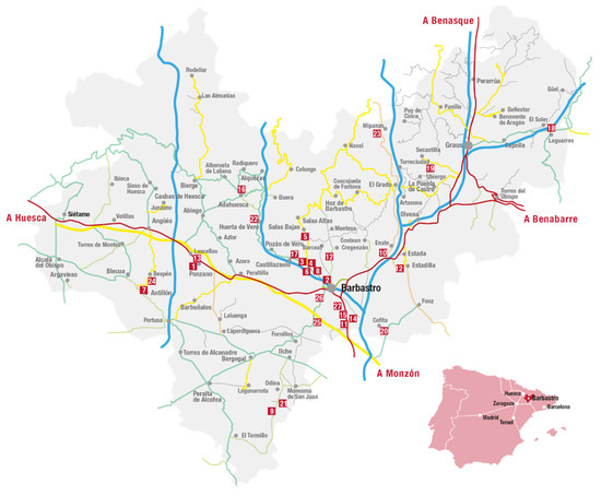 - Castelló Puig, A.; Hernández Navarro, M.L. La ruta del vino del Somontano de Barbastro (Huesca) como proyecto territorial de identidad cultural. Geographicalia 2011, 59–60, 61–72. [Google Scholar] [CrossRef][Green Version]