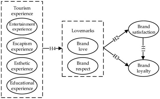 The positive relationship between brand satisfaction and loyalty has been widely discussed in prior studies. Bloemer and Kasper [35] demonstrated that the consumers’ satisfaction has a directly positive impact on their brand loyalty. Some empirical studies also regarded brand loyalty as the direct result of brand satisfaction, indicating that the brand satisfaction can contribute to a higher level of brand loyalty [50,51,52]. In the context of tourism, similar results have also been found. Drennan, Bianchi, Cacho-Elizondo, Louriero, Guibert, and Proud [53] found that among the five wine countries of origin, besides Portugal, the relationship between brand satisfaction and brand loyalty is significant and positive within the consumers from Australia, Chile, France, and Mexico. Also, the total effect of the wine brand satisfaction on brand loyalty is higher than other brand-related factors (brand trust and brand love). Nam, Ekinci, and Whyatt [54] explored a partial mediation model through brand equity, brand satisfaction, and brand loyalty in hospitality industry. Compared with the direct paths assessed by the predictors of brand equity, they found that brand satisfaction has the highest influence on hospitality consumer’s brand loyalty. Thus, it can be concluded that tourists’ brand satisfaction is a positive antecedent of their brand loyalty. The better the brand satisfaction perceived by tourists, the higher their level of brand loyalty will be [55,56,57]. Based on the findings above, the following hypotheses are proposed in the current study: