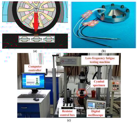 - Liu, X.; Wang, J. Performance Exploration of A Radially Layered Cymbal Piezoelectric Energy Harvester under Road Traffic Induced Low Frequency Vibration. IOP Conf. Ser. Mater. Sci. Eng. 2019, 542, 012075. [Google Scholar] [CrossRef]
