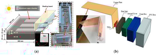 (a) Thermoelectric pavement harvesting using heat chamber. Reprinted with permission from []. (b) Internal arrangement of a TEG. Reprinted with permission from [].