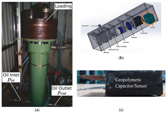 One of the crucial limitations of piezoelectric harvesters is the low power outcome. It can be summarised that piezoelectric harvesters, independent of their configuration and material properties, still have an outcome of almost 200 microwatts to 30 milliwatts [,,,,]. Figure 7 illustrates the internal structure of a cementitious piezoelectric composite.