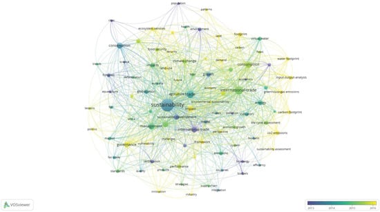In terms of the keywords analyzed, the potential lack of use of the most relevant terms in this matter such as sustainability or international trade could signify that research in this field of study in the coming decades is not fully assured, since there are many alternate and varying terms that researchers are using more frequently, for example agriculture, industry, politics, impact, governance, land, demand or carbon footprint.
