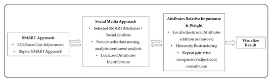 In this study, AHP was utilized in determining the localized attribute level of importance and their corresponding weights. In understanding the usage of AHP with spatial techniques, a comprehensive review of the existing literature reveals the connection between AHP and spatial-based information systems. An integrated approach that combined AHP with NetWeaver and spatial-based software was designed in Spain [39]. While the AHP was used for the determination of weights for the spatial based-indicators, the spatial-based software (ArcGIS) was utilized for the storage and performance of a certain spatial analysis. Another spatial-based software with AHP, utility theory, and an online analytical process was also utilized by Ahmad and teammates for the selection and the rating of selected variables level of importance [40]. They also ensure that a case study of how the integrated approach has been successfully applied was presented to reveal the reliability and validity of their approach.
