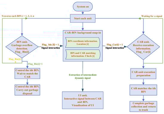 This part first introduces the internal structure and workflow of the system, and then makes an in-depth introduction to the three major components of the system, i.e., BIN unit, CAR unit and information interaction unit. The BIN unit mainly includes three functions: status escalation, overflow self-test and waste collection. The CAR unit is mainly composed of three modules: environment awareness and location, planning and decision, and collision detection and avoidance of path obstacles. The information interaction unit is mainly responsible for processing the data and outputting the best waste removal route as well as the deployment suggestions for all relevant parts of the system.