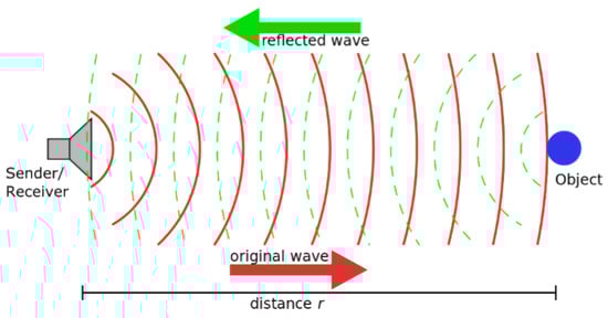 Based on the performance of the ultrasonic sensor, which can propagate in gas, liquid, solid, and other media, the ultrasonic detection method is adopted in the BIN unit waste overflow detection device. A schematic diagram of the principle of ultrasonic detection is shown in Figure 8.