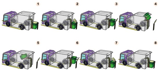 In developed countries, managing municipal solid waste disposal is more mature. However, most research into municipal waste sensing and collection devices is confined solely to the intelligent aspects of the waste bins instead of the overall system. In 2016, the Big-Belly-Solar Company of the United States launched a smart waste bin that integrates solar energy, IoT, and high-efficiency compressors. However, its use is greatly limited by its high unit price (approximately USD 8000) [71]. Finnish Enevo Co., Ltd. launched EnevoOneCollect smart waste bins based on wireless sensing and cloud services technology, aiming to “travel less and recycle more waste” [72]. These attempts are mainly aimed at the sensing, collection, and classification of waste. In Sweden in 2017, Volvo also launched a trial operation of automatic waste collection vehicles (WCVs) (also variously known as refuse trucks, dustcarts, rubbish trucks, junk trucks, bin wagons, dustbin lorries, bin lorries, bin vans, and trash trucks.) using mechanical grippers to grab and dump waste bins [73]. However, the WCVs still had to be driven manually.