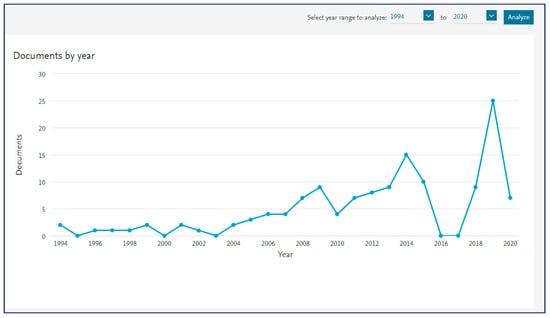 A literature review was carried out employing the keywords: “Inclusive education” AND “sustainability” AND “disability”, from 1994 to 2020 obtaining an initial number of 133 documents (see Section 2.4.) Scopus and Web of Science databases were used. In Figure 1, learning analytics are shown of the search results, which the Scopus database provided.