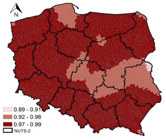 4.1. Spatial Dependencies in MW among Polish Communes