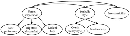 Kim et al. [25] used the brand avoidance model suggested by Lee et al. [61] as a basis to investigate the conceptual structure of fast fashion avoidance, with particular focus on the negative beliefs of fast fashion. The authors first suggested eight types of negative beliefs surrounding fast fashion (i.e., poor performance, overly trendy style, big store discomfort, lack of personal help, inauthenticity, deindividuation, irresponsibility, and foreignness) from the analysis of blog contents [25]. The structure of negative beliefs was confirmed through a confirmatory factor analysis (CFA) with the data in a web-based online survey. Accordingly, they presented second-order factors with “unmet expectations”, “symbolic incongruence”, and “ideological incompatibility”.