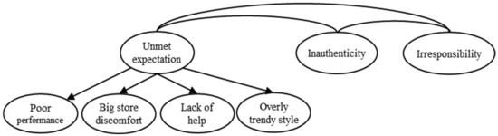 Unmet expectations are reflected in four types of negative beliefs, including those related to poor performance, overly trendy style, big store discomfort, and the lack of personal help. Poor performance refers to the low product quality of fast fashion (e.g., stitching, materials, and durability). The overly trendy style indicates whether fast fashion styles are considered trendy and sensitive to changing trends. Big store discomfort refers to the inconvenience caused by the size of a store (e.g., too big to browse the merchandise in the store, thus making the customers feel discomfort), while the lack of personal help pertains to a salesperson’s service in a store.