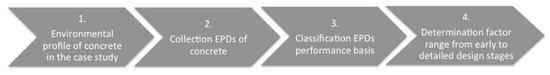 A case study validation based on a structural material like concrete demonstrates the possible application of the EPD in decision-making in the BIM methodology design process. The results obtained show the minimum, maximum and median values for the selected environmental impact categories that can be used at early design stages, which matches the EPD of the possible range of products that will be used at the detailed design stage.