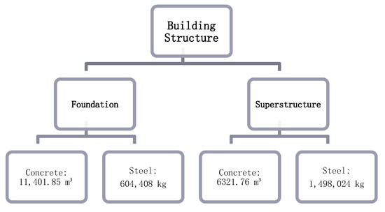 The definition of the structure’s environmental profile was defined by adopting an EPD of 1 m3 of concrete, the density of 2400 kg/m3 and compressive strength class C 25/30 [43] according to German Institute for Standardization (Deutsches Institut für Normung eV) DIN EN 206-1 [44]. The EPD adopted concerns a concrete certified by InformationsZentrum Beton GmbH.
