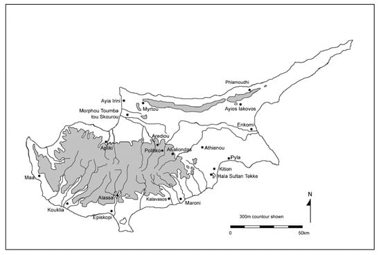 - Knapp, A.B. The Archaeology of Cyprus: From Earliest Prehistory through the Bronze Age; Cambridge University Press: Cambridge, UK, 2013. [Google Scholar]
