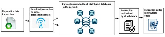 A comprehensive view of the Blockchain process. It is a distributed database, shared and integrated among all contenders. It ensures the integrity by encrypting, validating, and permanently recording transactions [5].