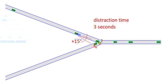 - The maximum distraction time: The time frame in which a driver is distracted and during which a collision with another vehicle or an obstacle may (or may not) occur. In our calculations we assumed deviated trajectories of 5 s.