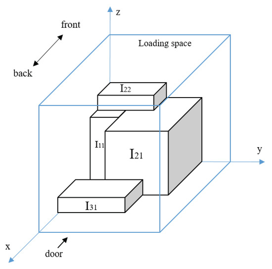 The loading space of each car is placed into the first hexagram limit in cartesian coordinate system, and the length, width, and height of the loading space are respectively parallel to the X-axis, Y-axis and Z-axis of cartesian coordinate system. The position of each box in the loading space is given by the box angle coordinates , , and , which are closest to the origin of the coordinate system.