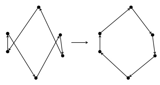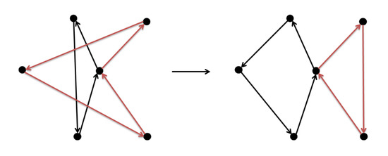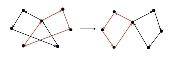 - 2-opt:This is a method frequently used in the traveling salesman problem (TSP). As we use this operator to move the solution, we will choose one route that has at least three customers to reverse a sub route of it. We can eliminate internal intersections of one route by this way as Figure 6.