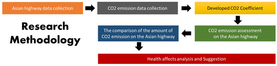 This study aims to develop the CO emission coefficient for MHDVs in Thailand against varying topography, which consist of the road data, slope, distance, traffic, weight and fuel consumption along the transportation route. The coefficient of emission is then calculated using multiple linear regression analysis and validated by Huber–White standard errors for heteroscedasticity. The CO emission estimate for each route of the Asian highway is then produced and used in analyzing the health impacts residents in each area are susceptible to. The studies also propose carbon dioxide maps of areas with high risks of health effect and propose the policy and plans to manage the transport traffic in each area for alleviation for the populace effected by such emission.