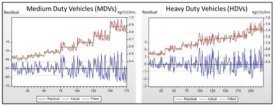 Based on data from the MDVs and HDVs’ database analyzed with multiple regression methods, the coefficient values can be defined by the estimate regression equation as follows: