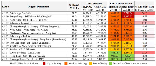 Figure 19) shows that residents of areas with low RSC levels or none are subject to low or no health effects. Conversely, areas with high RSC levels and areas with high traffic amount are subject to CO